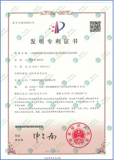 2021年5月再添2項(xiàng)授權(quán)發(fā)明專利--炸藥生產(chǎn)廢水的預(yù)處理方法及其處理系統(tǒng)(專利號(hào):ZL 201711117309.9)、一種鉻泥資源回收及廢渣無害化處理的方法及系統(tǒng)(專利號(hào):CN201810876172.3)。?